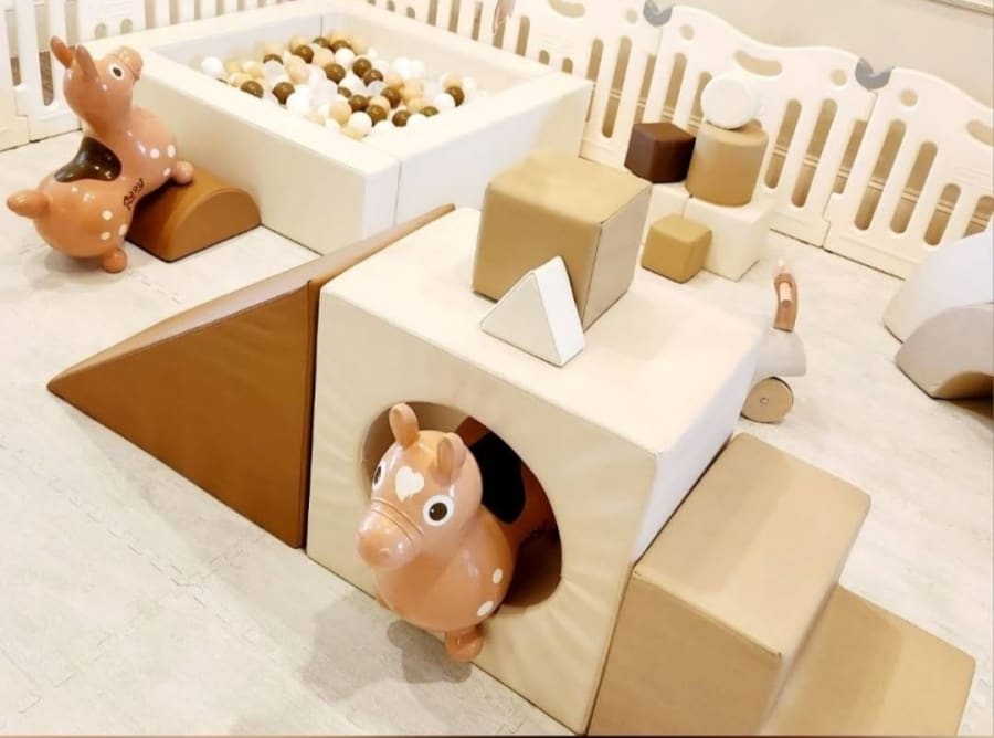 Watch us transform your home or venue into a magical play wonderland! Our professionally designed soft play setups include a ball pit, crawl tunnel, builder blocks, bouncy animals, safety gates, and more. Each setup is thoughtfully created for safe, fun, and exploratory play—perfect for crawlers through age 4.