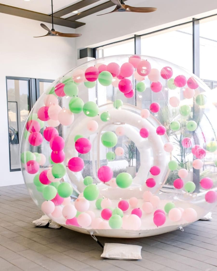 The Bubble House can be styled to match virtually any theme or color palette. From soft pastels for a 1st birthday to bold colors for statement events, the clear dome and interior balloons create a clean, modern look that photographs beautifully indoors or outdoors. Pair it with an exterior balloon garland, soft play, bounce houses, or marquee numbers for a fully styled celebration.