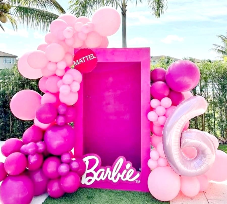 Our Barbie Photo Box includes a breathtaking 12ft balloon garland that features four specialty balloons, offering a spectacular visual appeal that will captivate your guests. The vibrant colors and elegant design of the balloon styling perfectly complement the iconic Barbie theme, creating a picture-perfect backdrop for everyone to enjoy.