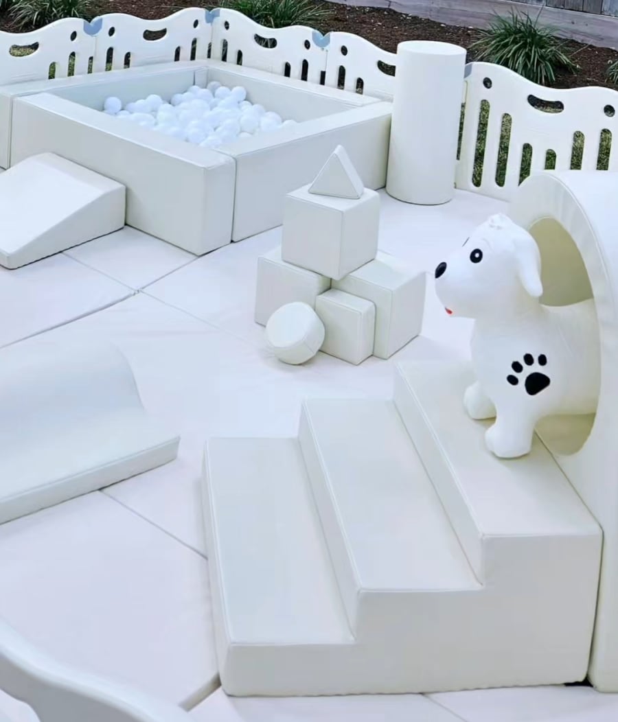 ✔ Ball Pit – A spacious pit filled with soft white balls for endless sensory play.