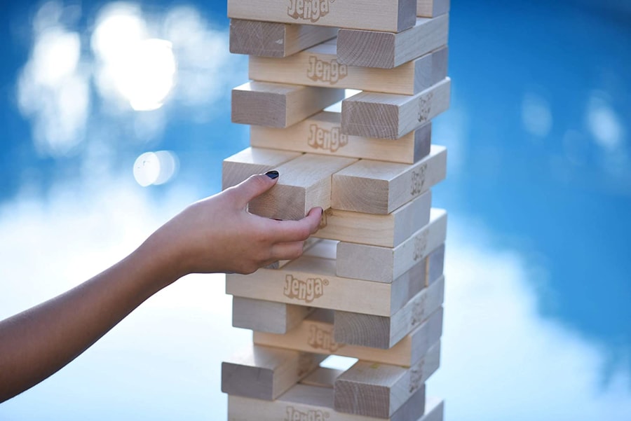 PERFECT FOR INDOOR OR OUTDOOR PARTIES! Gather round your friends to entertain any crowd, designed for kids and adults! Makes for a very interesting and exciting fun! GIANT SIZED JENGA comes with 50 large precision-crafted wood blocks. Can grow to 2.5-feet to over 5-feet while playing. Suitable for indoor or outdoor use.