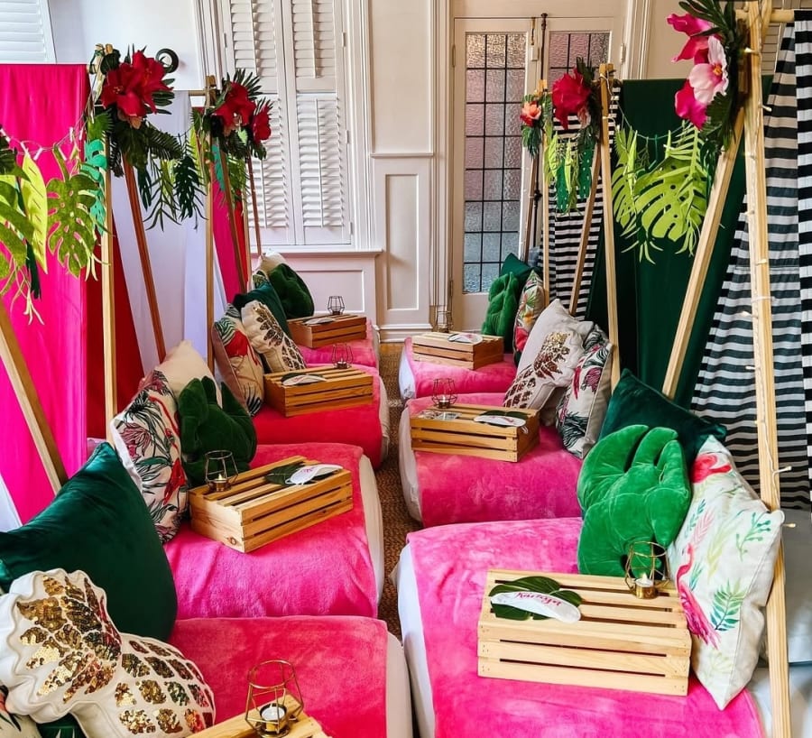 Each handcrafted slumber tent is styled with premium details that elevate your party experience. From plush bedding to soft lighting, every element is designed to create a cozy, magical atmosphere your guests will love.