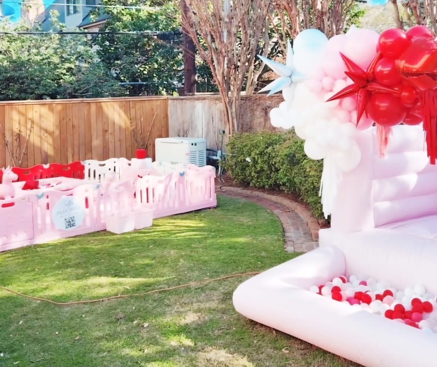 Add the perfect pop of pink to your toddler’s celebration with our Mini Pink Bounce with Ball Pit — a crowd favorite for first birthdays, playdates, and intimate backyard or indoor parties. Designed especially for little ones, this pastel pink toddler bounce house features a built-in ball pit that adds an extra layer of excitement. Kids can jump, giggle, and dive into a sea of balls for nonstop fun in a safe, age-appropriate setup.