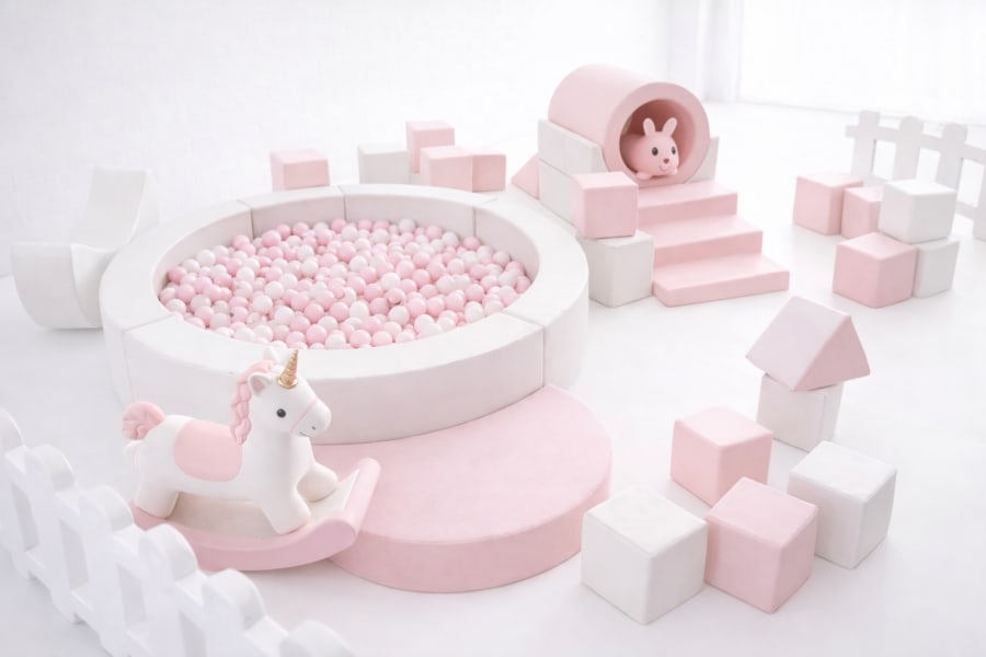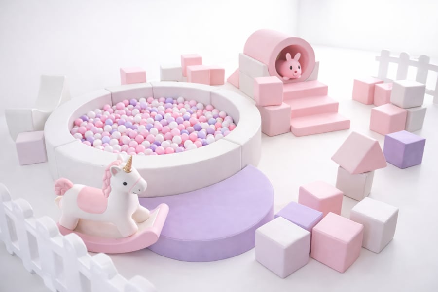 Want to elevate the look even more? Add lilac details to the ball pit, blocks, or soft play elements for a soft pink, white, and lilac palette that feels modern, trendy, and unique. Perfect for: Princess-inspired themes, Butterfly or floral parties, Pastel “Onederful” birthdays and Bow-themed celebrations. We customize the color balance to complement your event décor.