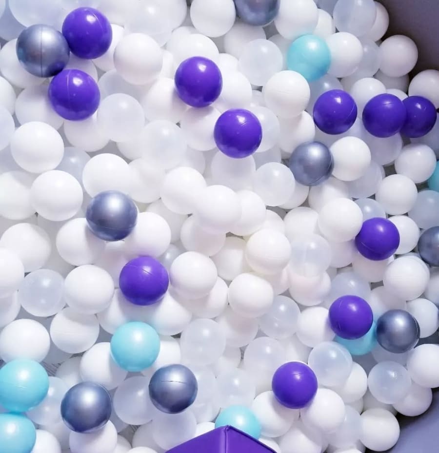 🧜♀️ Ball Pit – Coordinating gray, purple, teal, and pink balls for fun sensory play