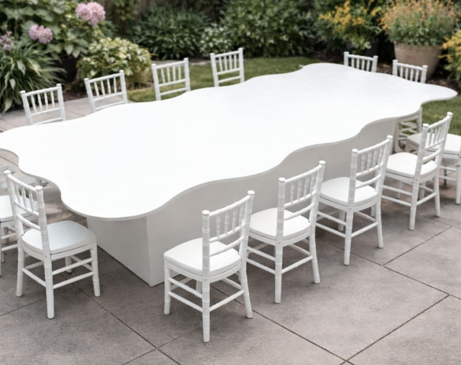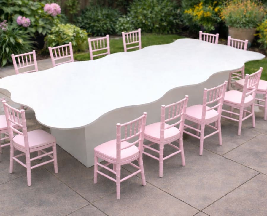 Reserve the Kids White Wavy Table for your next event and create an unforgettable kids’ tablescape. Book now and let the little ones take center stage!