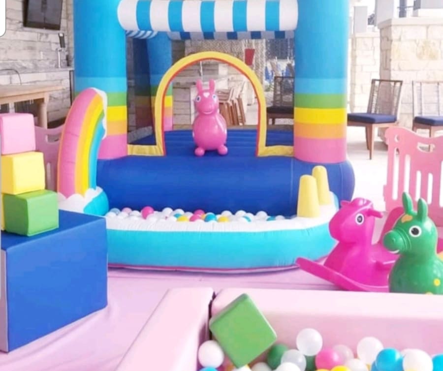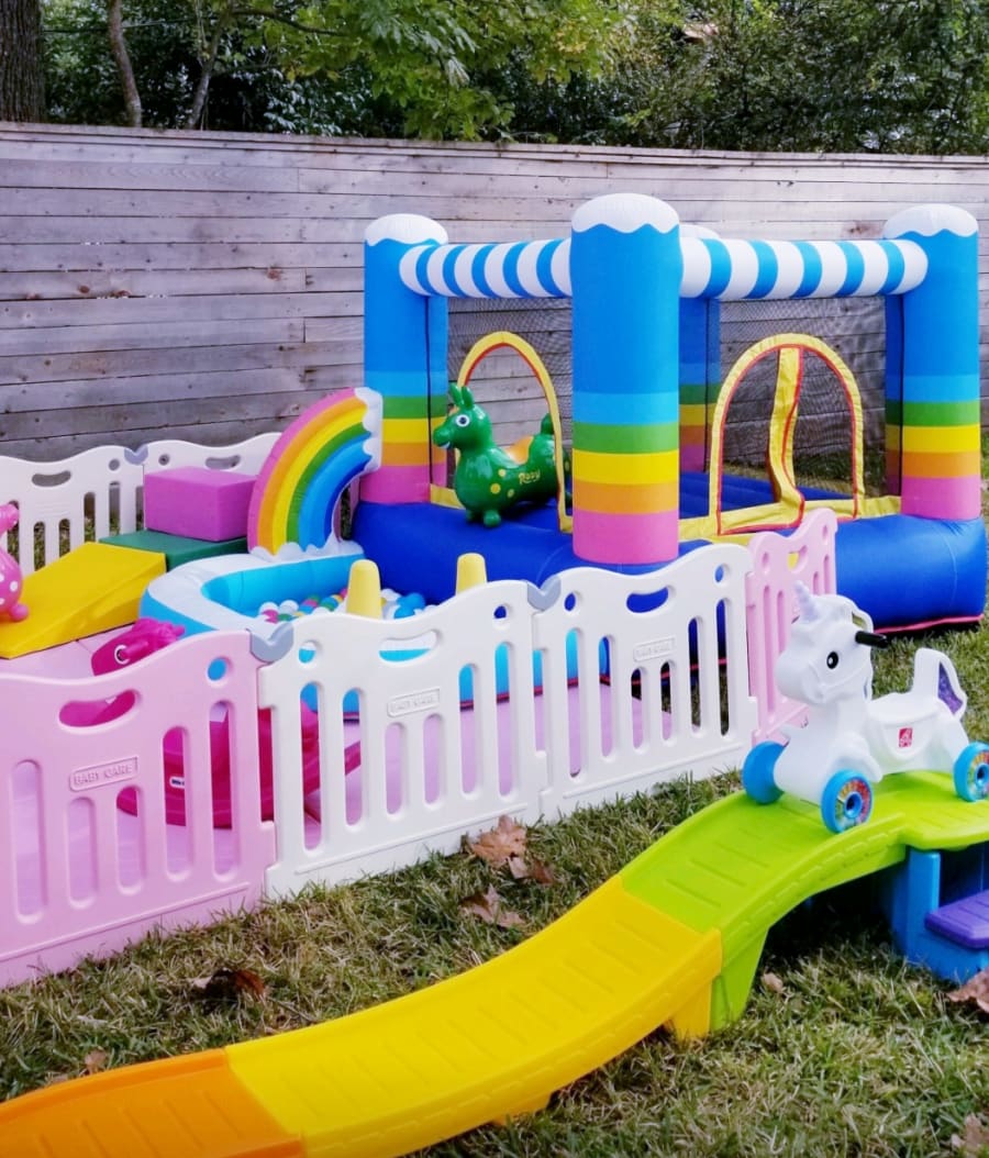 Perfect for toddler birthdays, indoor play spaces, for a small group offering a fun toddler-friendly experience. Its compact footprint makes it great for small spaces or backyards.